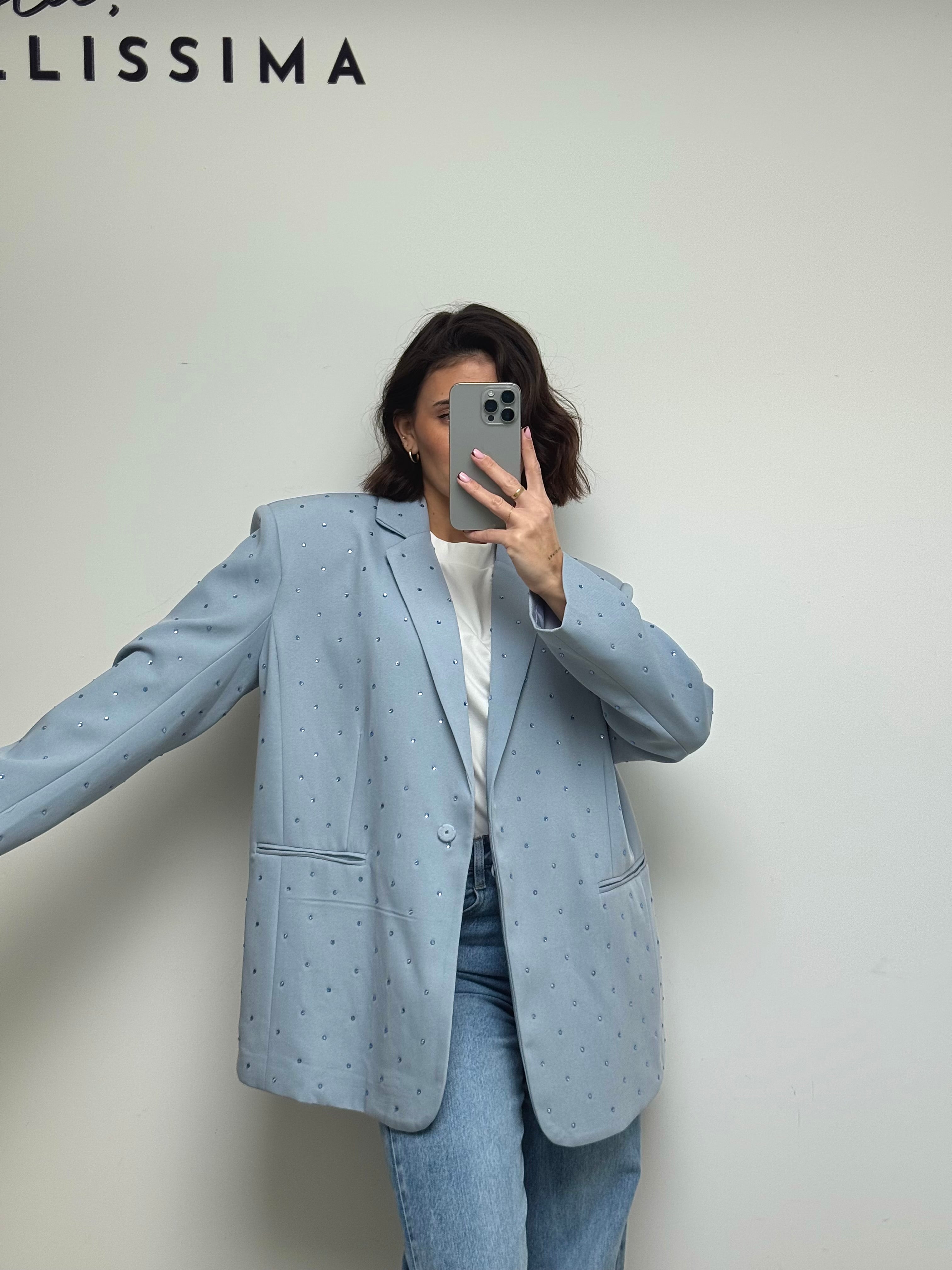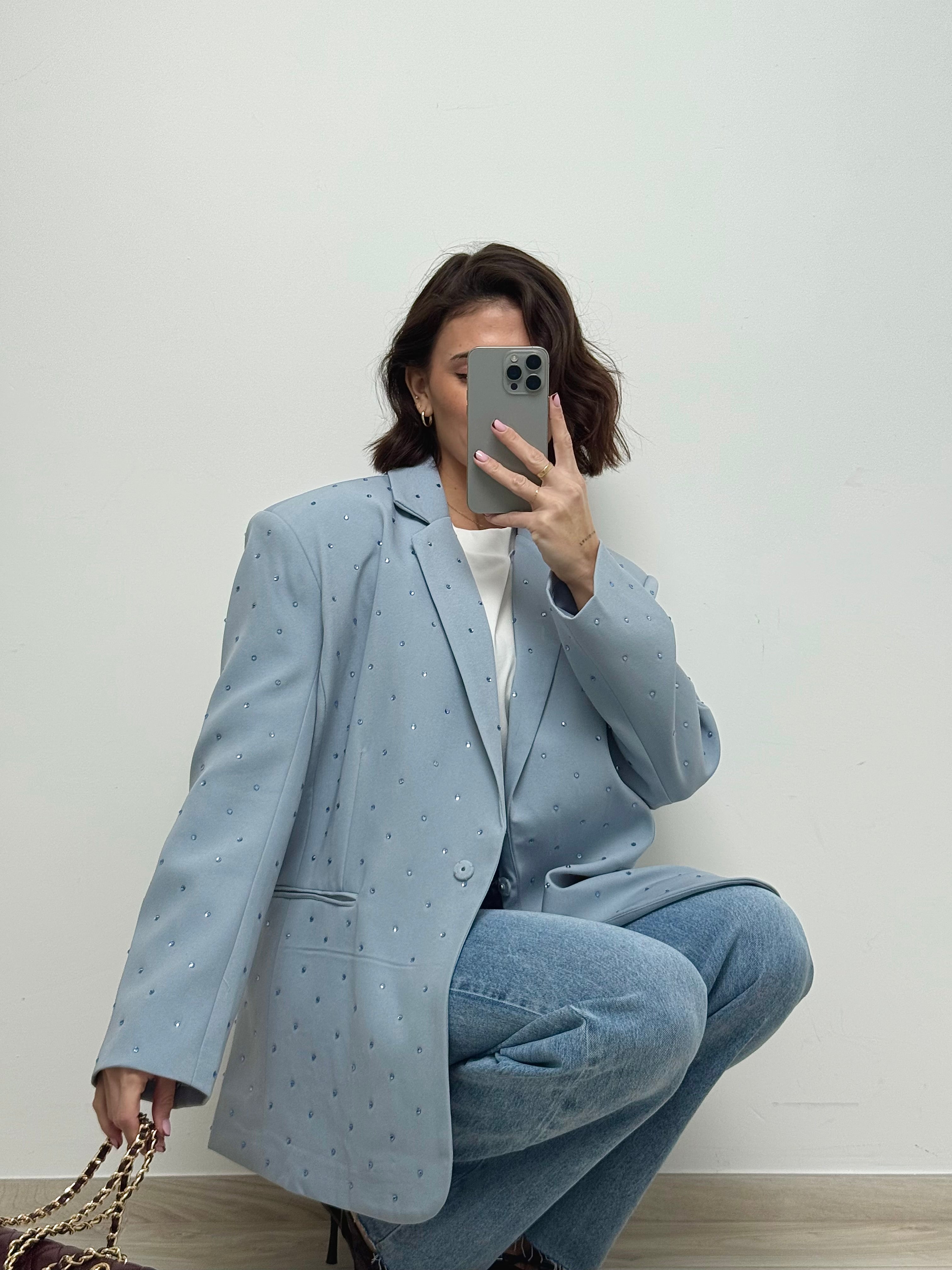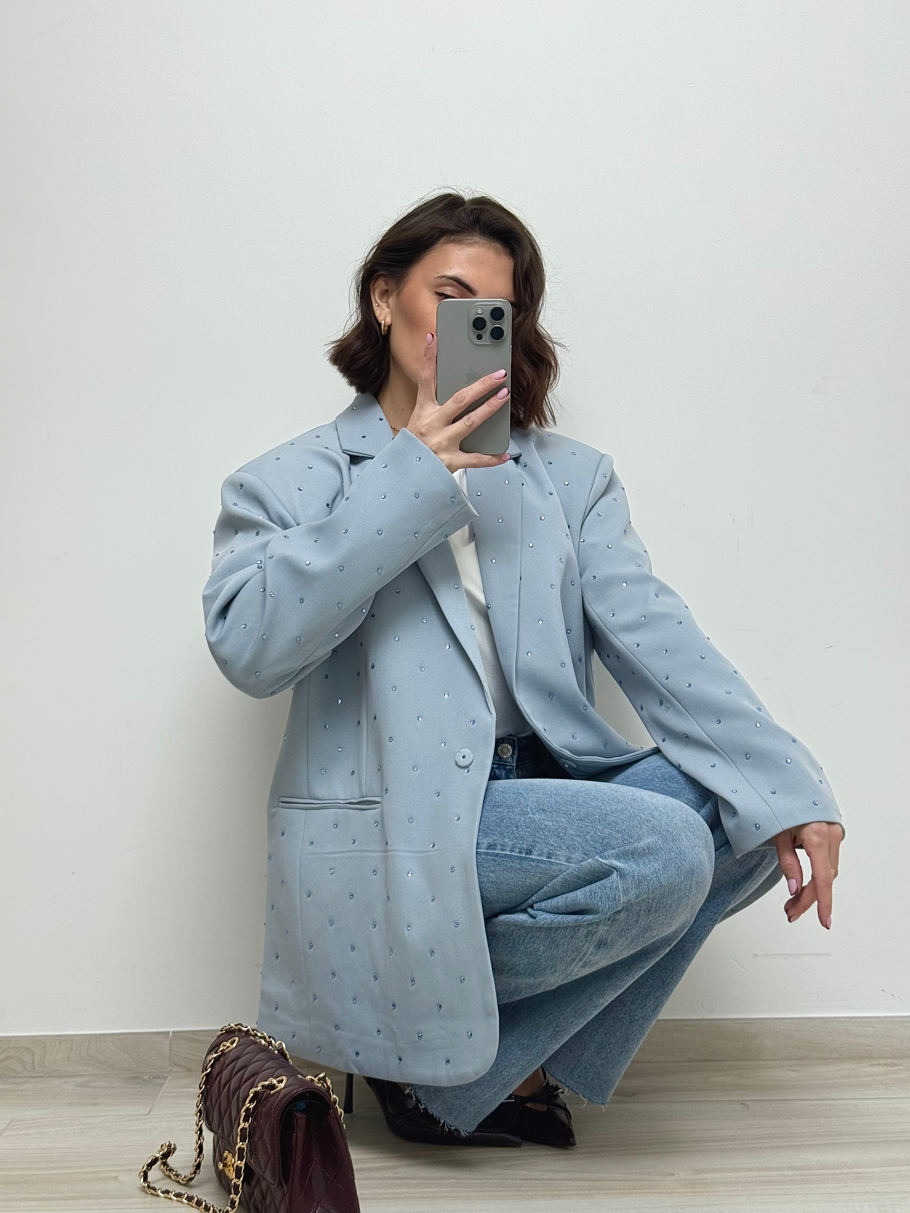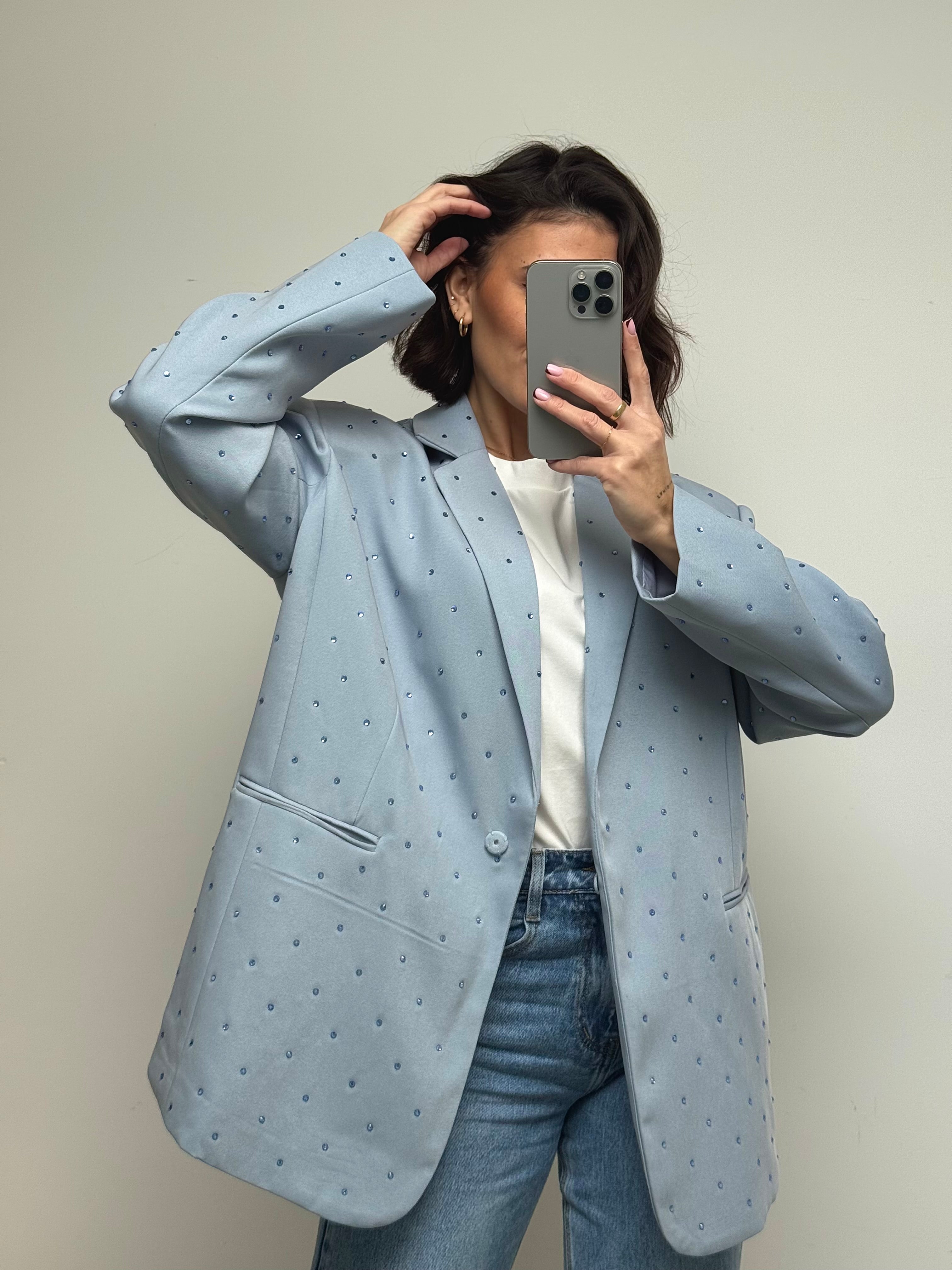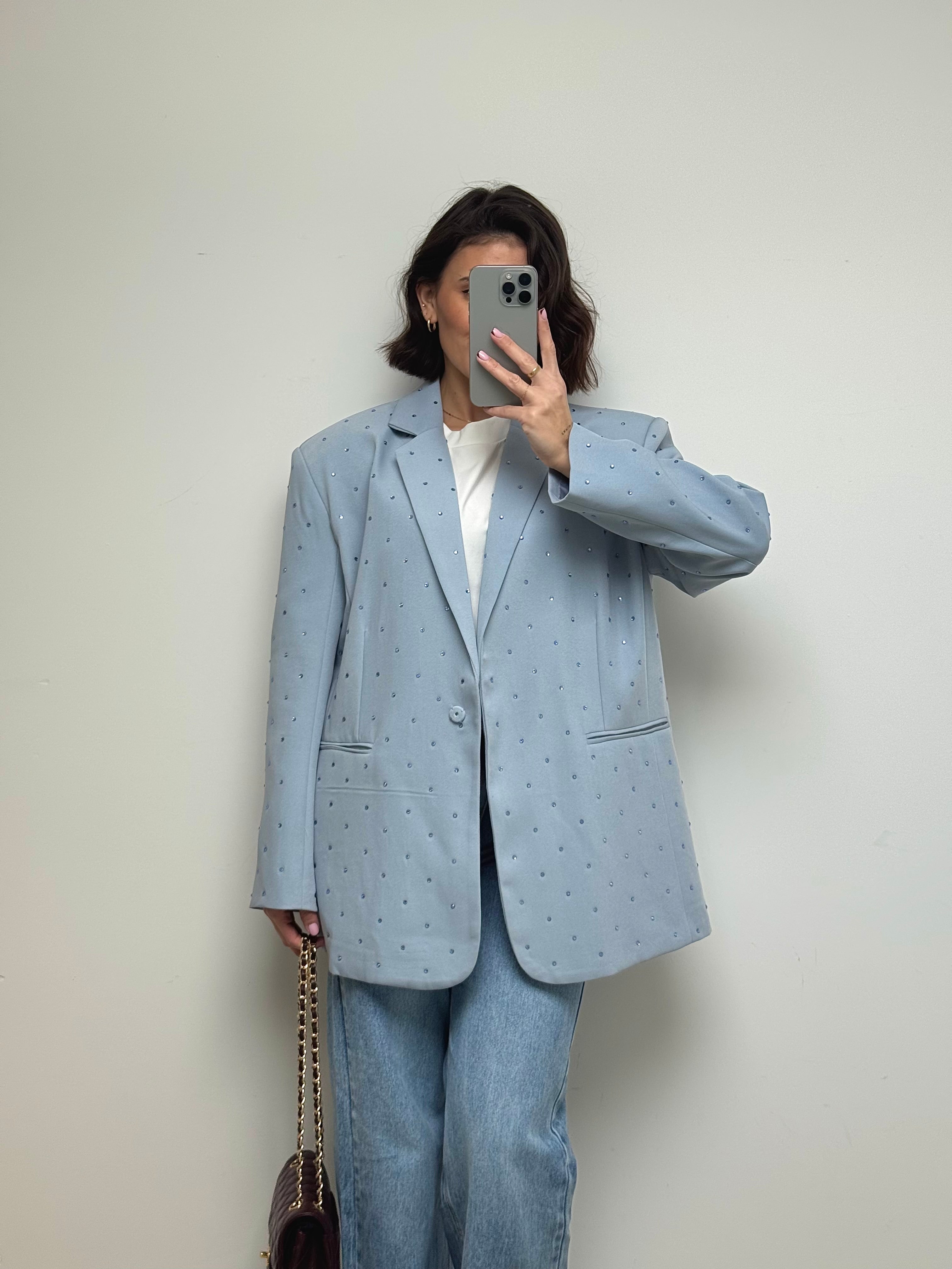 Blazer à strass bleu ciel