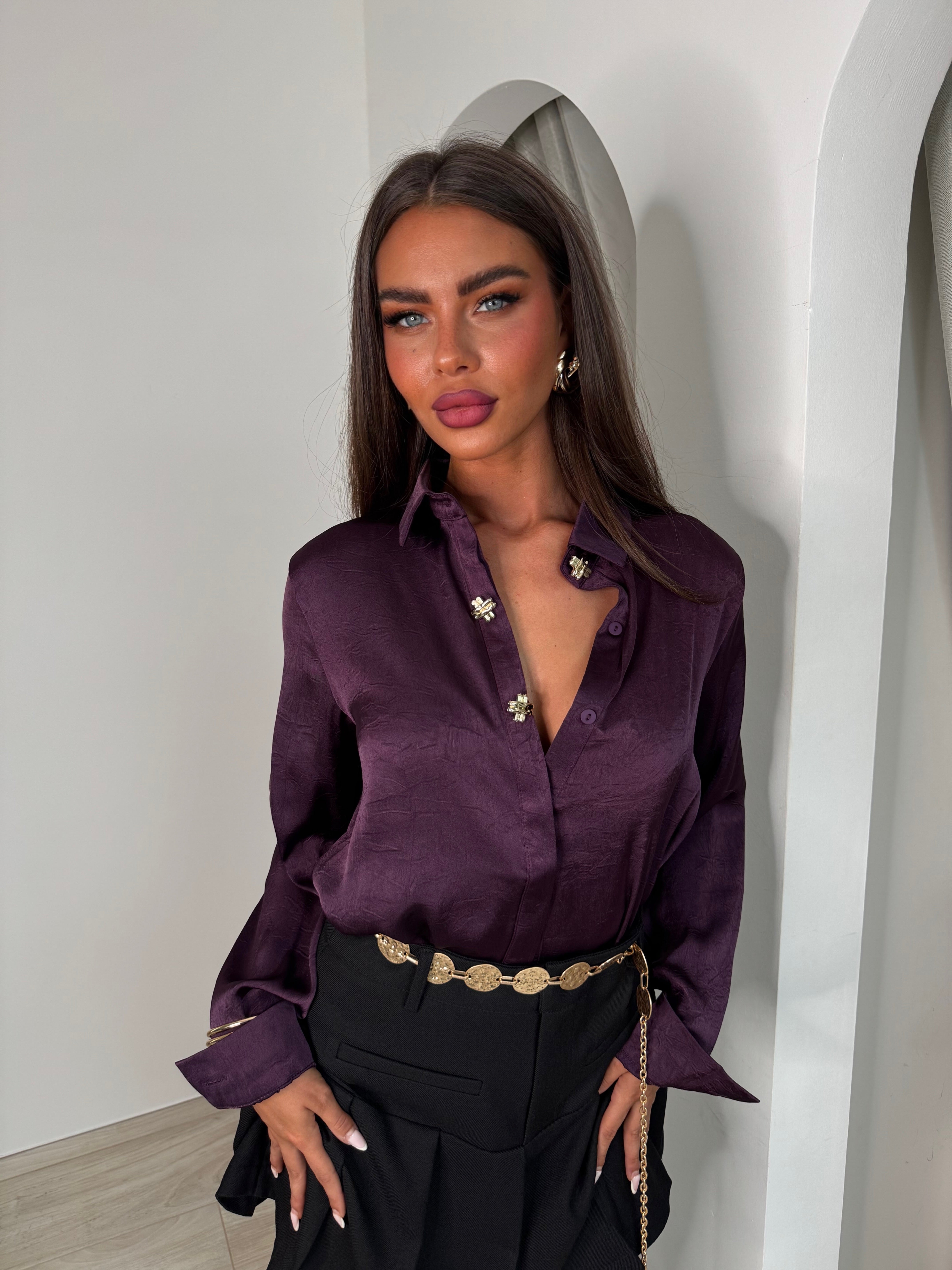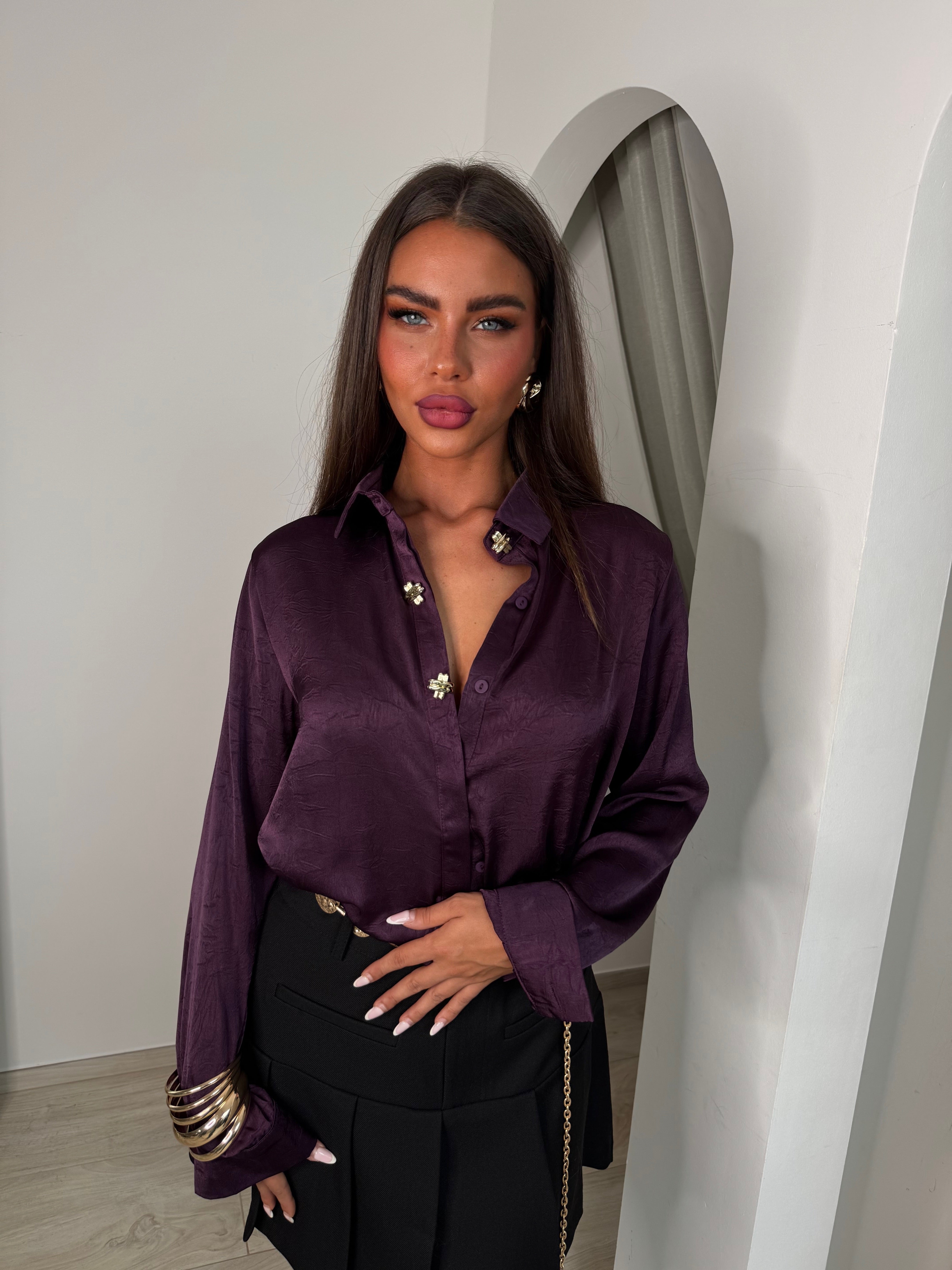 Chemise satinée à boutons bijoux