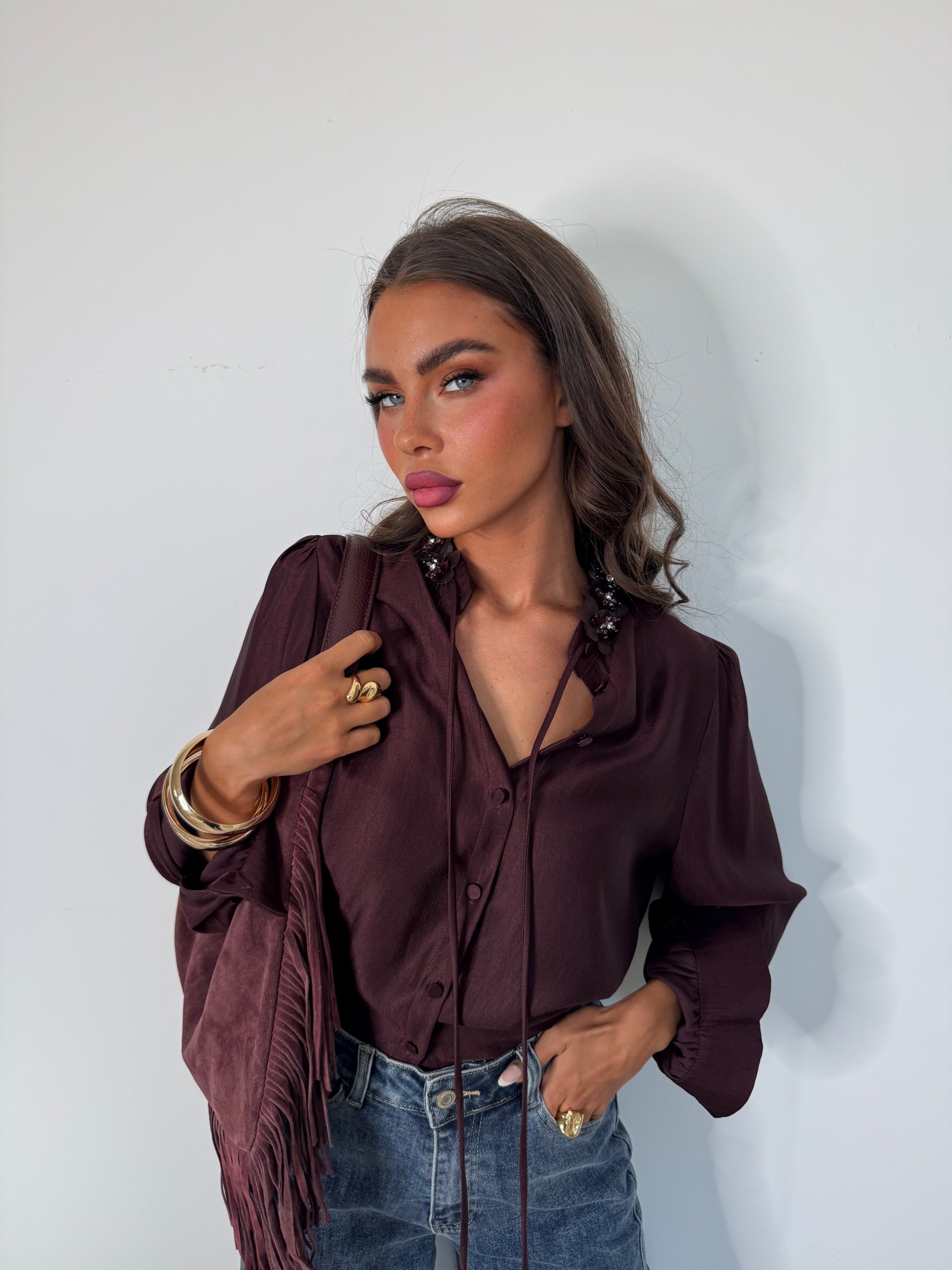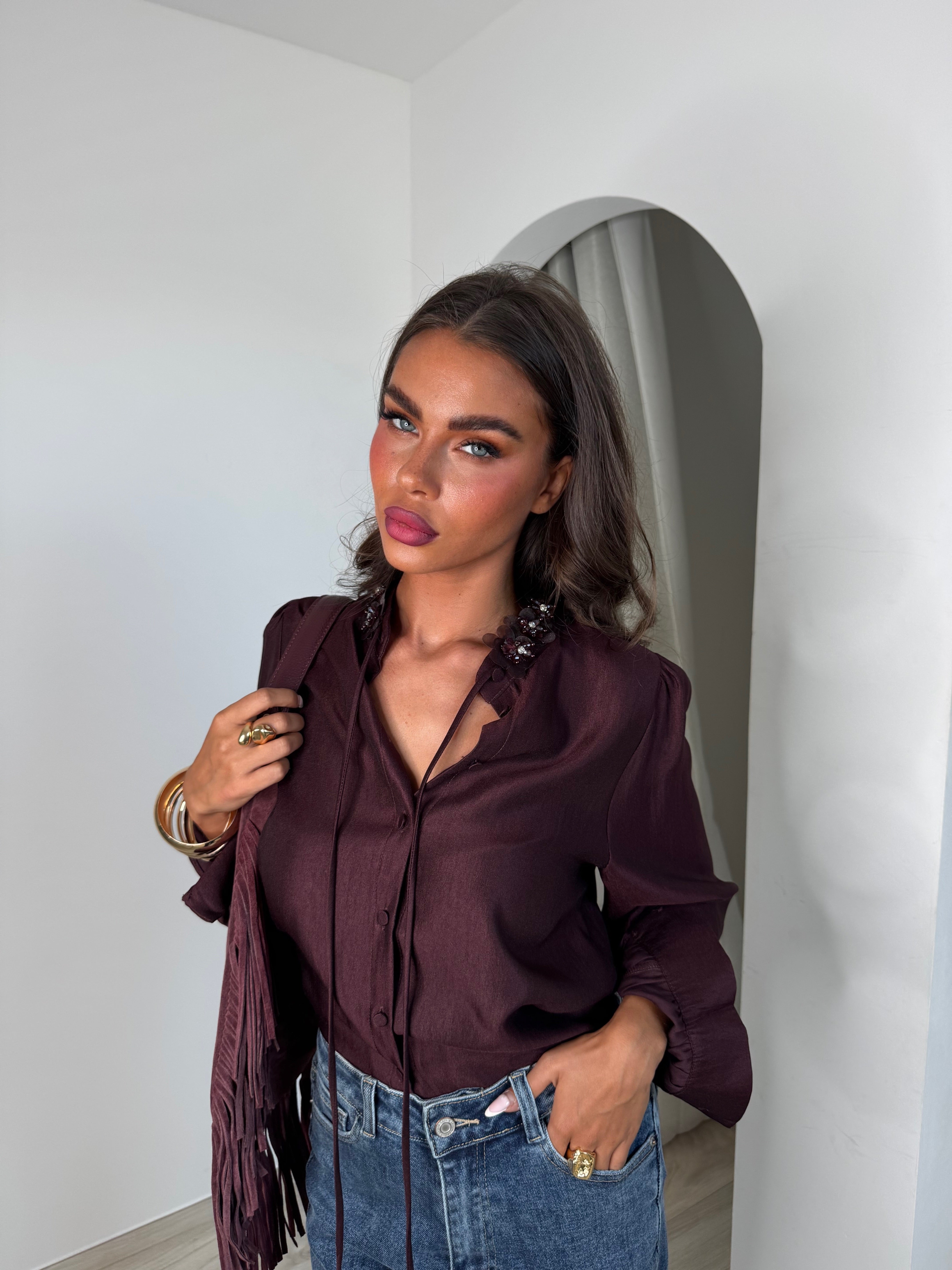 Ce produit est confectionné avec des matières de qualité supérieure. Cette blouse élégante séduit par son col orné de fleurs délicates et son lien à nouer, ajoutant une touche romantique et raffinée. Ses manches longues bouffantes et sa coupe fluide en font une pièce idéale pour un look chic, que ce soit au bureau ou lors d’occasions spéciales.