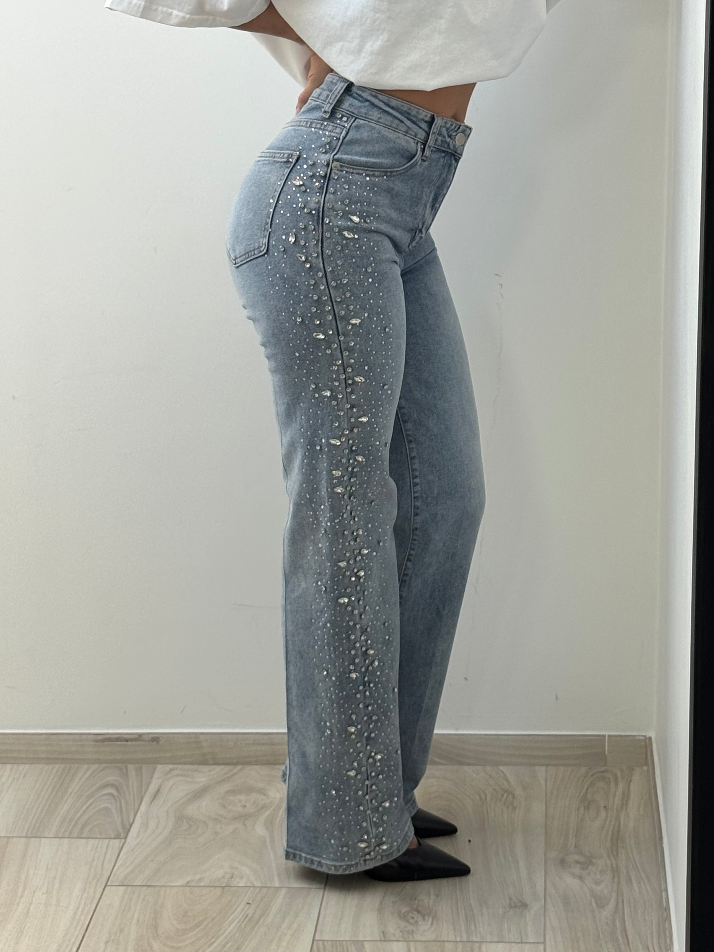 Jean droit bleu clair à strass