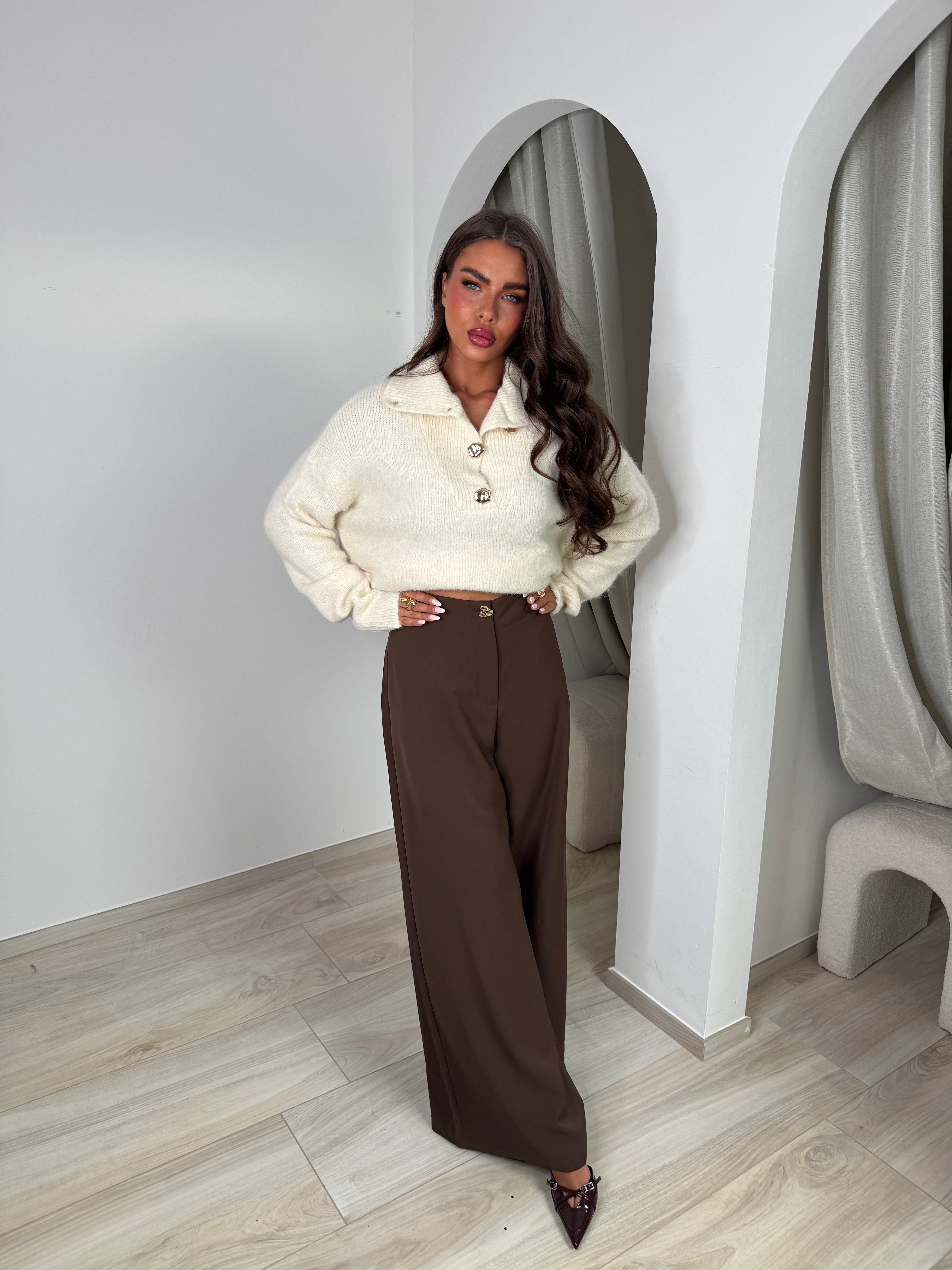 Pantalon Palazzo Avec Bouton FantaisieComposition : 95% polyester 5% elastane