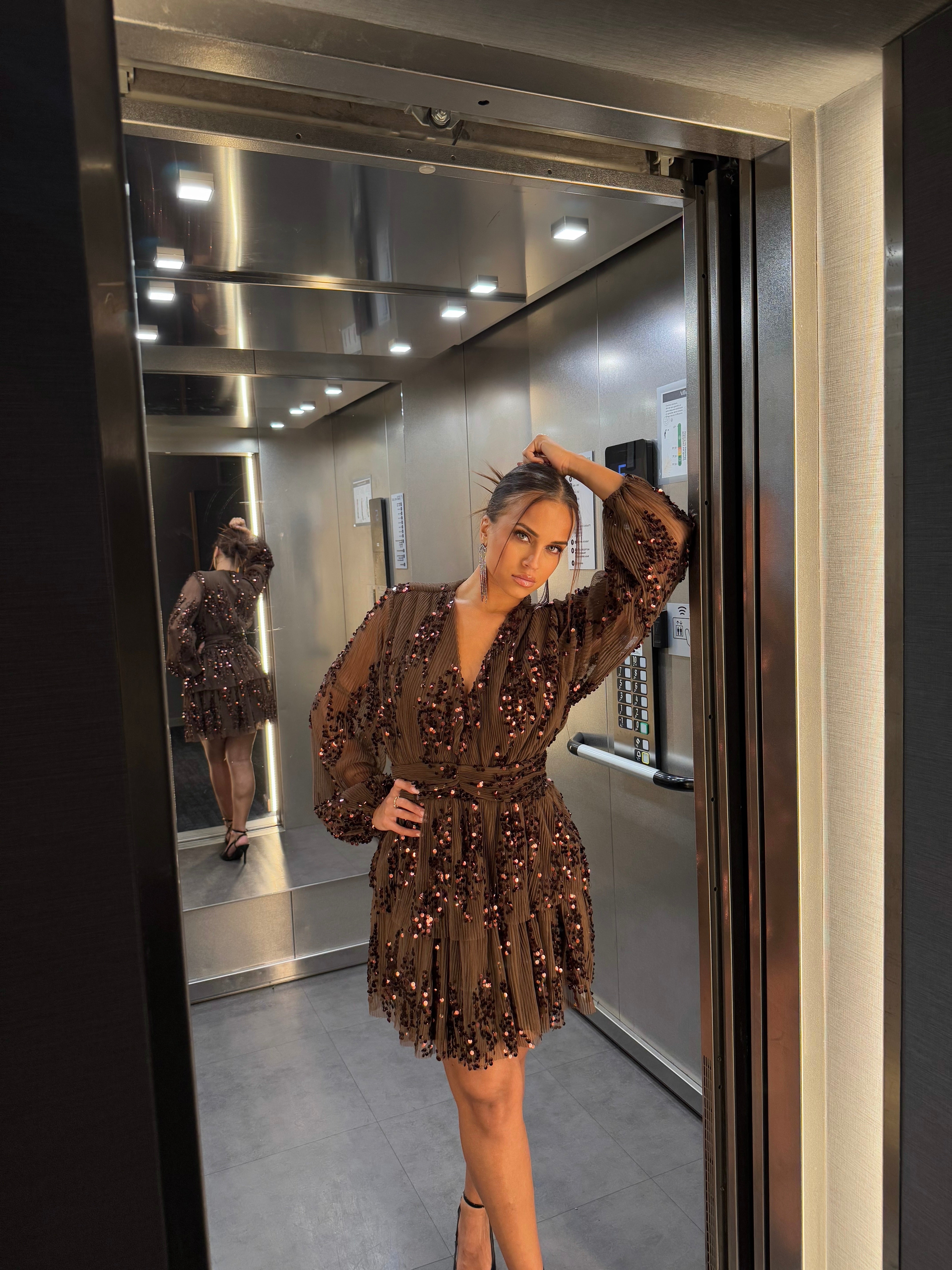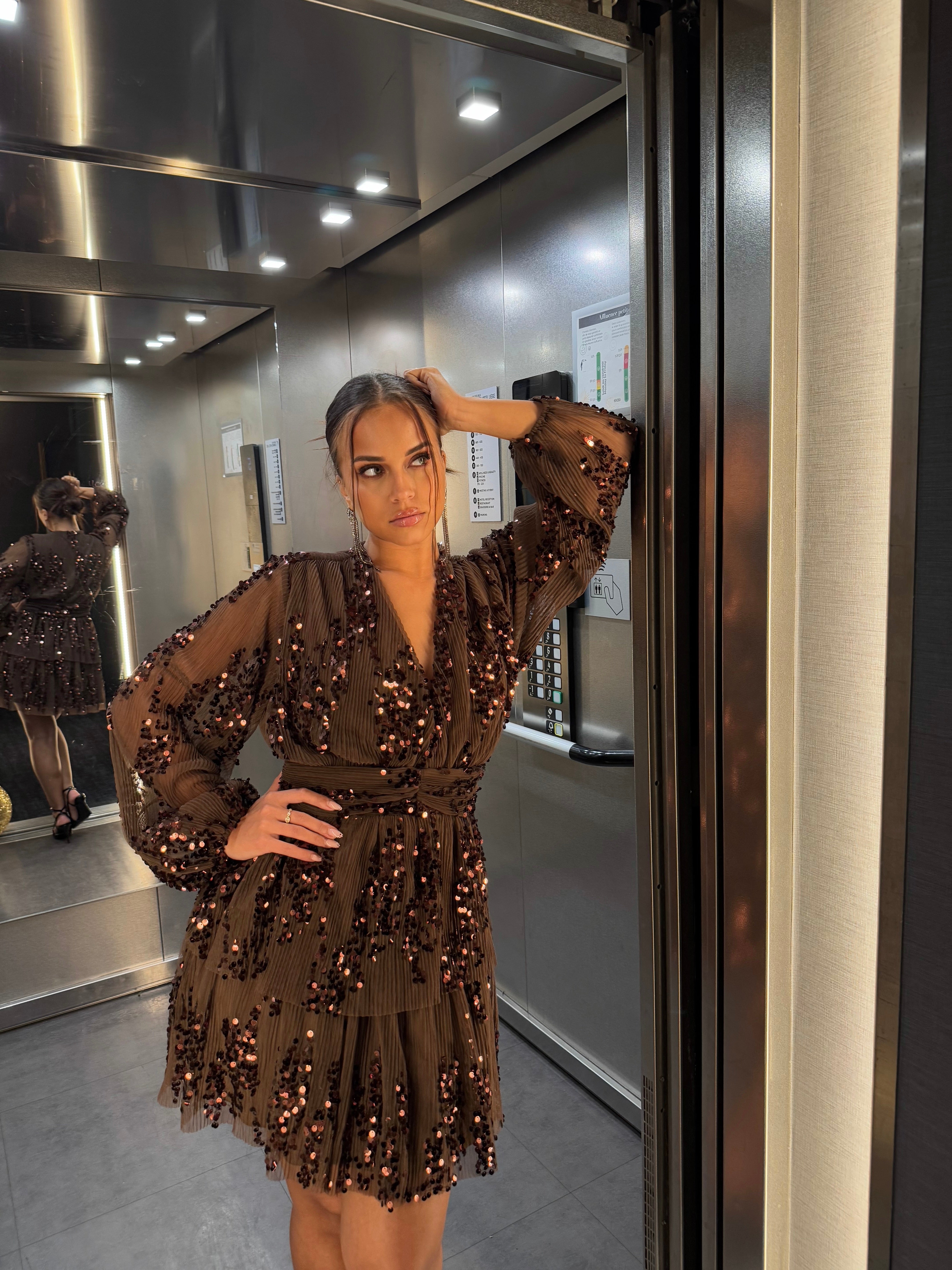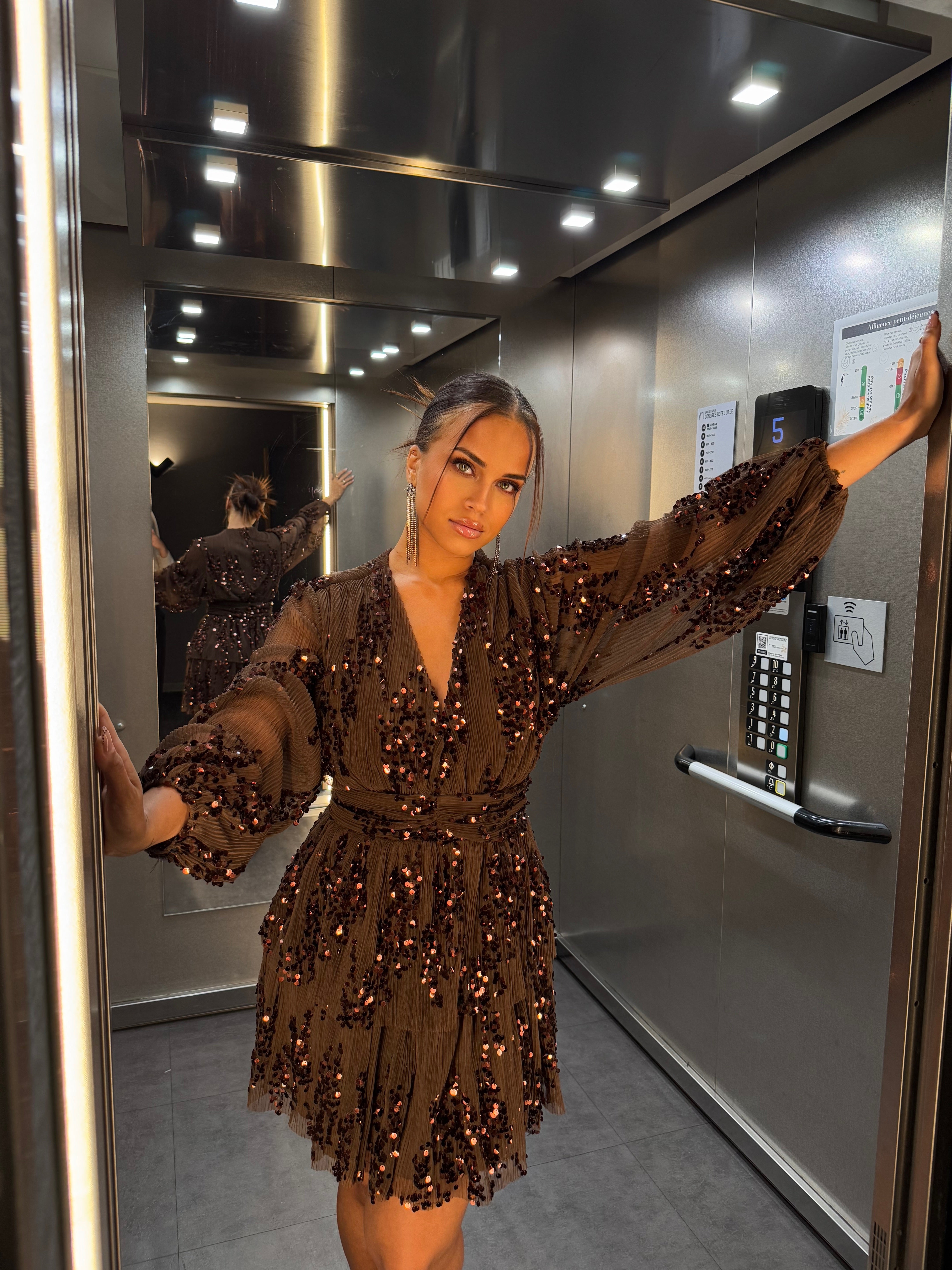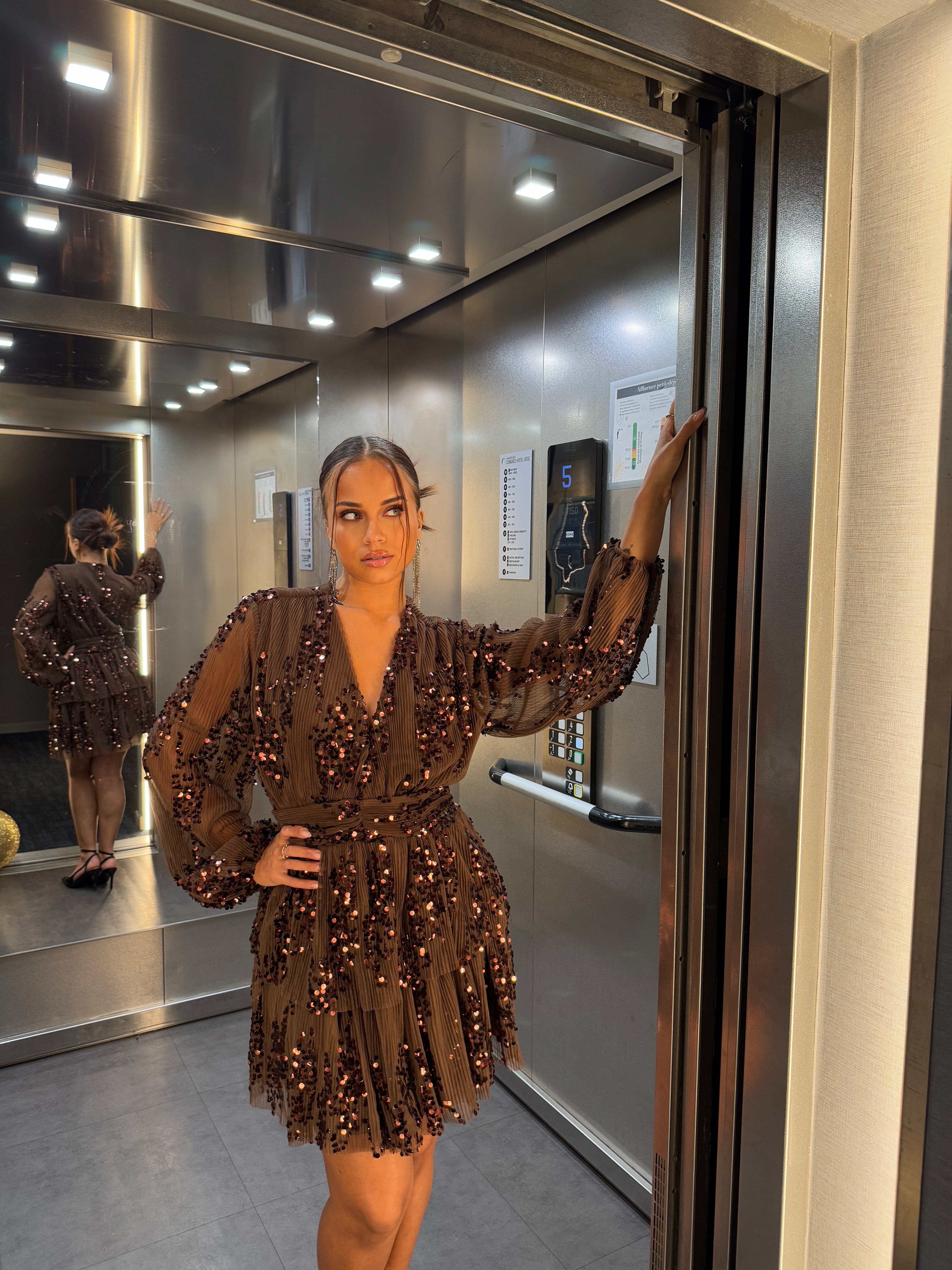 Découvrez cette robe marron à sequins, parfaite pour briller lors des fêtes de fin d'année. Son design élégant et scintillant attire tous les regards, tandis que sa coupe flatteuse met en valeur votre silhouette. Une pièce incontournable pour une soirée inoubliable ! 🤎