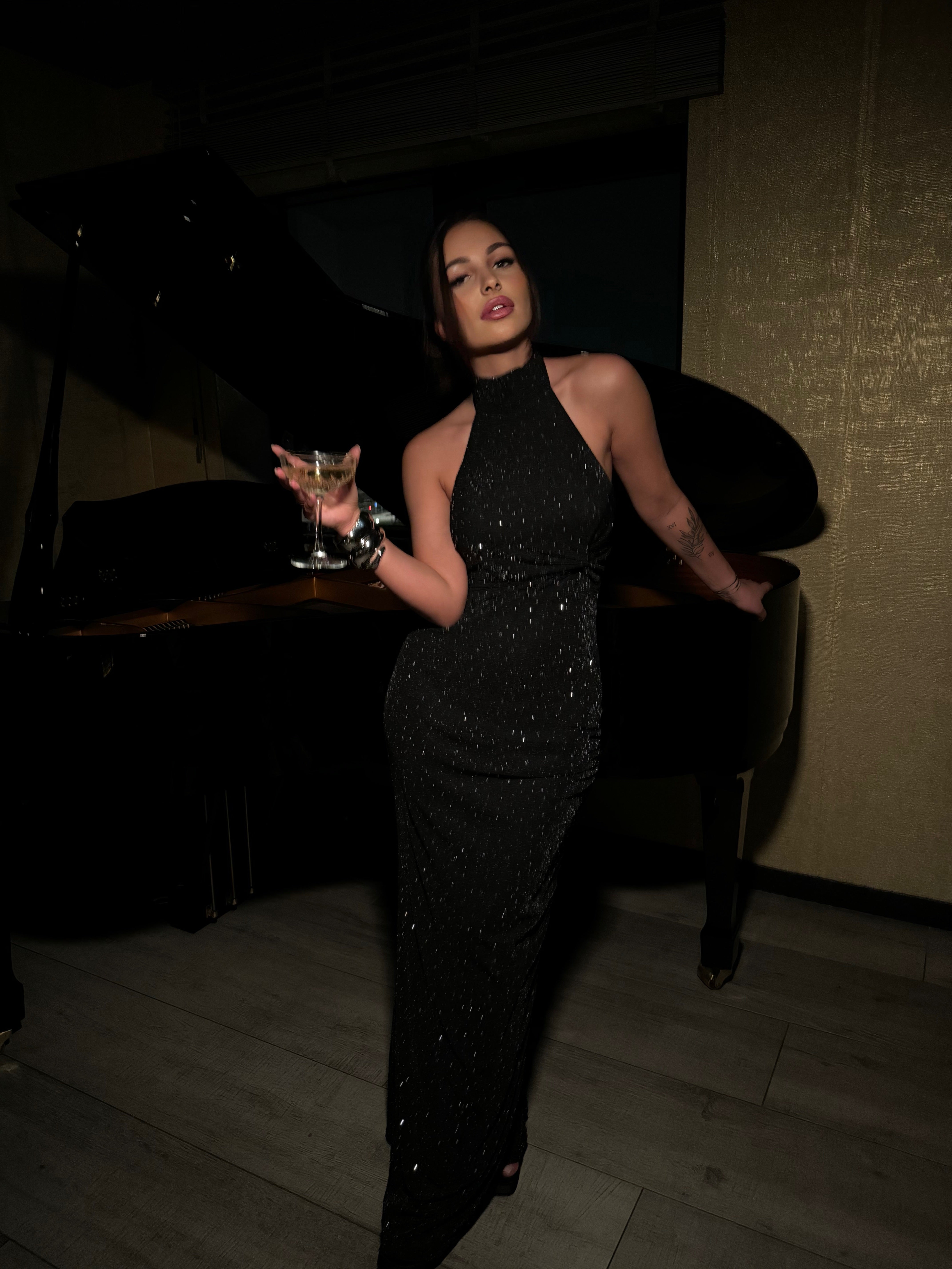 Vous êtes si belle dans cette robe à la coupe longue ! On adore sa couleur noire qui va avec tout, son dos ouvert super canon et ses strass si glam. On l'enfile avec un manteau long et des talons pour un look date night qui garantira un effet wow. Vous êtes sublime 🫶🏽